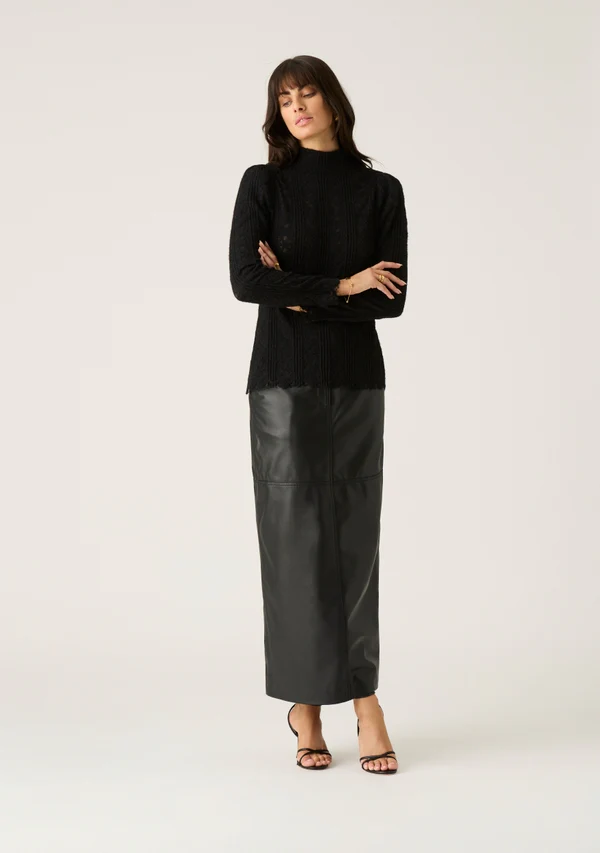 Feminine and effortlessly elegant, the MOS Anna Lace Long Sleeve Top features a high ribbed neck, full length sleeves, and just the right amount of stretch to skim the body. Wear it with Maria Panelled Midi Skirt for an elevated evening time look or pair it with jeans during the day.