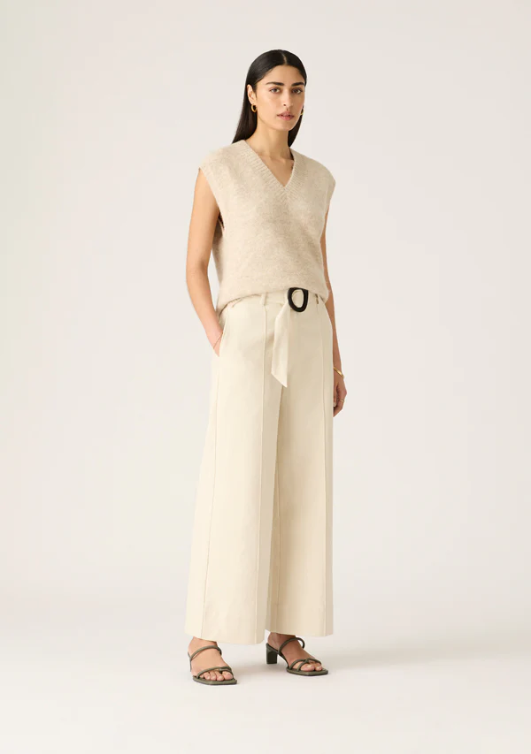 Swaying effortlessly through flowing wide leg shaping, these pants deliver seamless chic in crisp, classic ivory. Creating definition at the waist with an organically-shaped black buckled belt, the pants sweep to full length as centre-seam detailing helps to elongate the leg, complemented by further functional detail in a concealed front fastening and discreet pocking front and back.