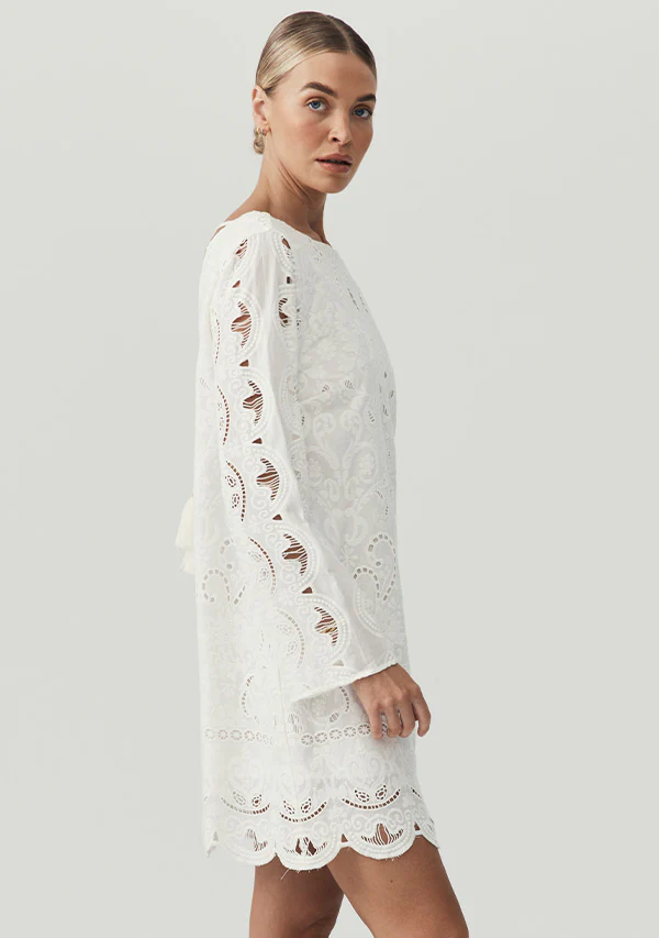 Timeless in nature, the Nora Midi Dress has beautiful artisanal embroidery details. Featuring a feminine silhouette, a subtle scoop neckline, relaxed fit and scalloped hem ~ pair with a tie-up sandal for daytime, or a heel for your next summer event.
