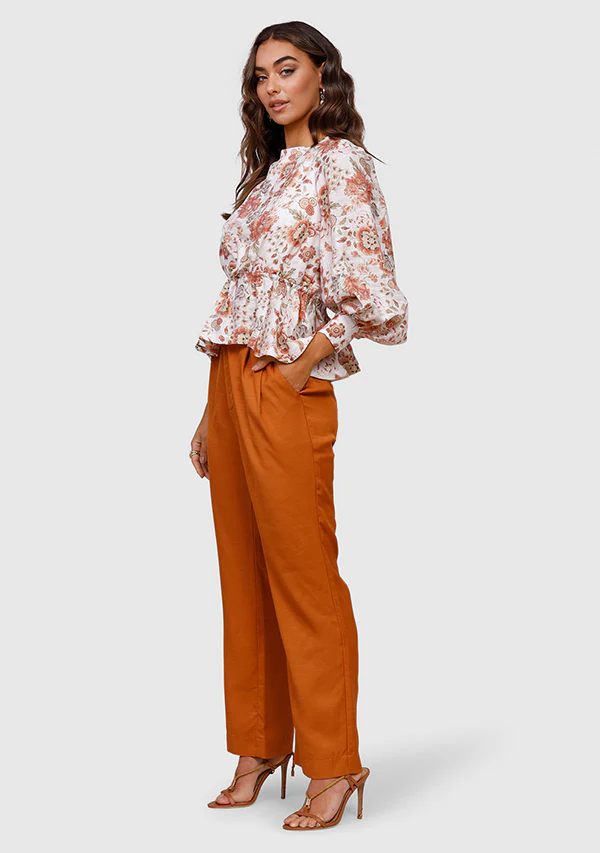 The Nu Boheme Top brings one-of-a-kind artisanal craftsmanship details to the forefront. Featuring a floral print intensified with puffed sleeves that are cuffed with a button closure, an open back with beaded tie closure and a peplum hem. Style it with a pair of pants, heels and gold tone jewellery for a balmy vacation look.